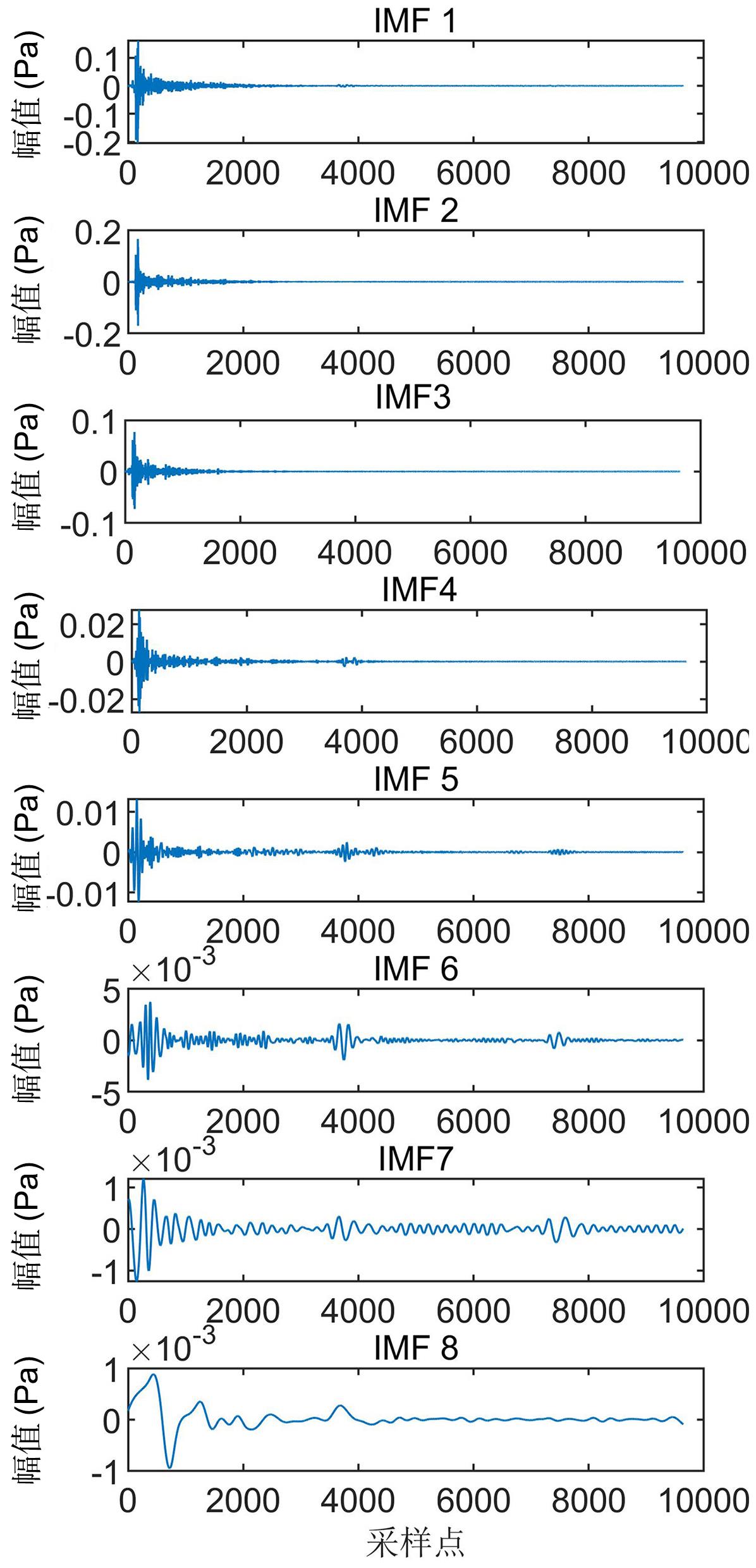 | 帧分量 | IMF1 | IMF2 | IMF3 | IMF4 | IMF5 | IMF6 | IMF7 | IMF8 |