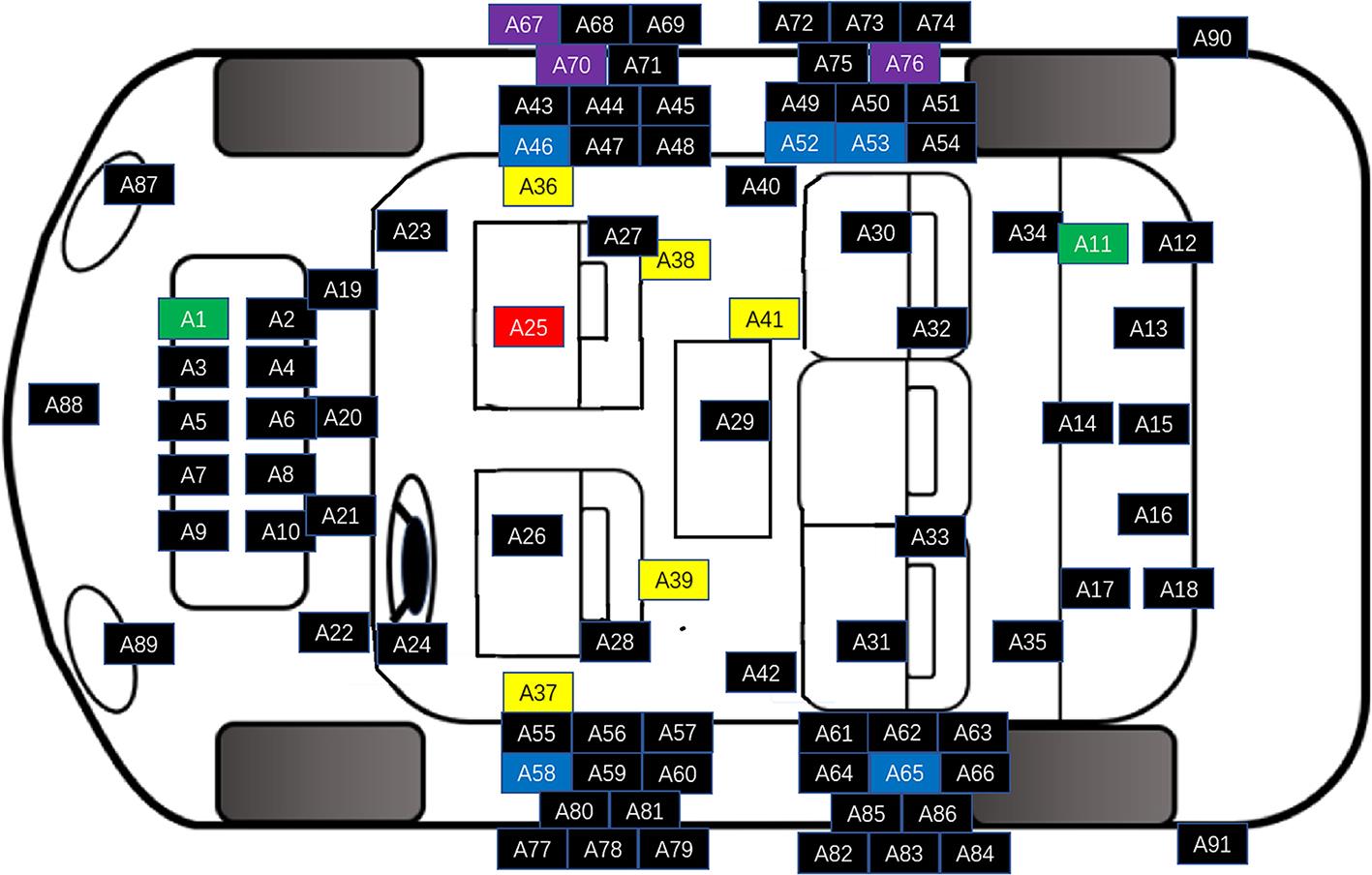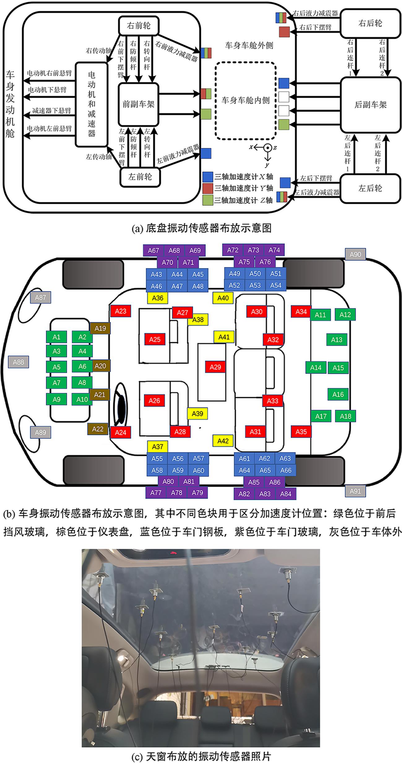 风洞实验底部振动参考(包含底盘和车内地面)及不同数目车身振动参考的降噪量 (dBA)