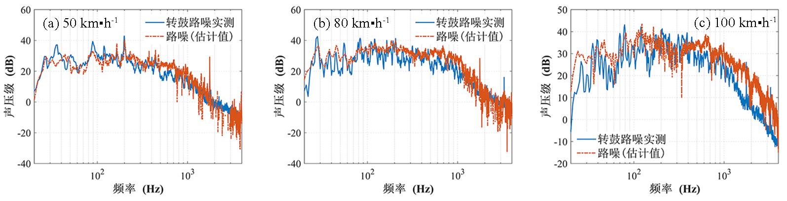 不同速度下路噪声压级估计以及风噪和路噪的占比