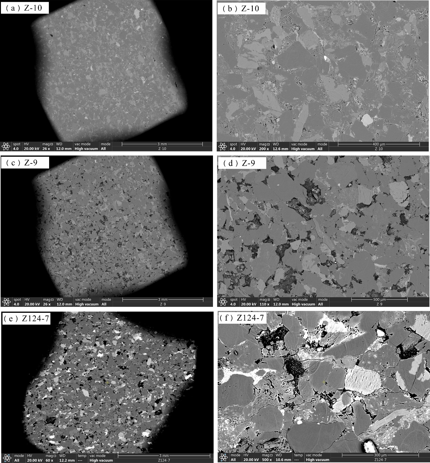 | Fig.4 SEM images of large field for three typical sandstone samples |