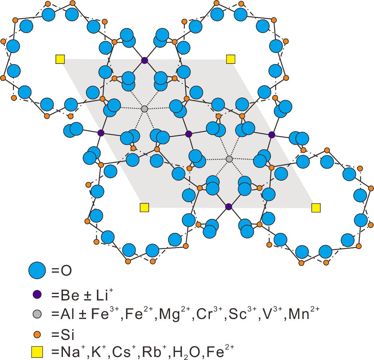 | Fig.1 A schematic representation of the structure of beryl projected onto the basal (0001) plane[ |