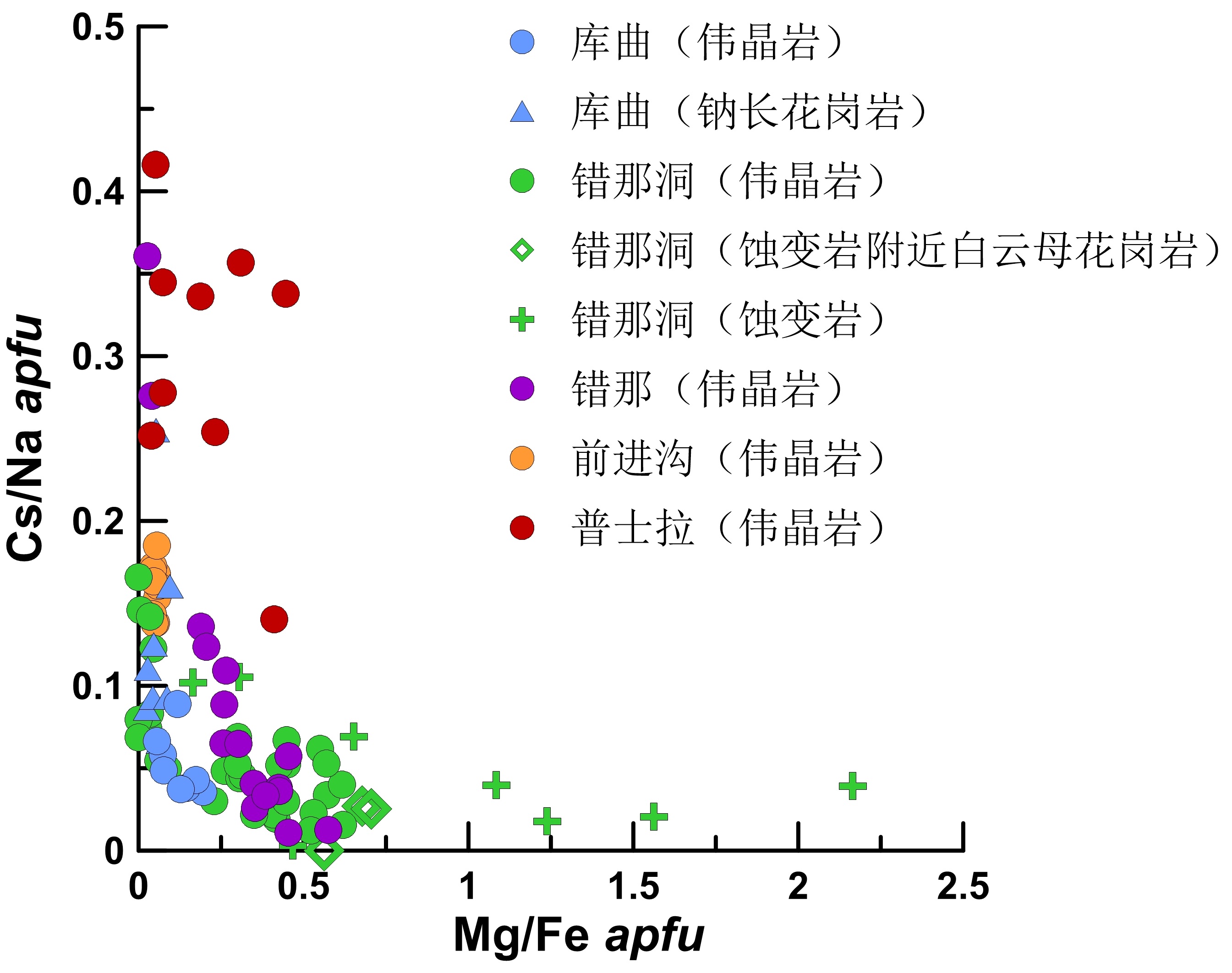 | 图6 喜马拉雅样品中绿柱石的Cs/Na vs. Mg/Fe图解 |