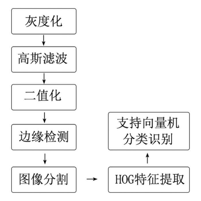 基于HOG特征提取和SVM分类相结合的东巴象形文字的识别包括图像采集、图像预处理、HOG特征提取和支持向量机分类识别四个步骤.识别流程如图1 所示.