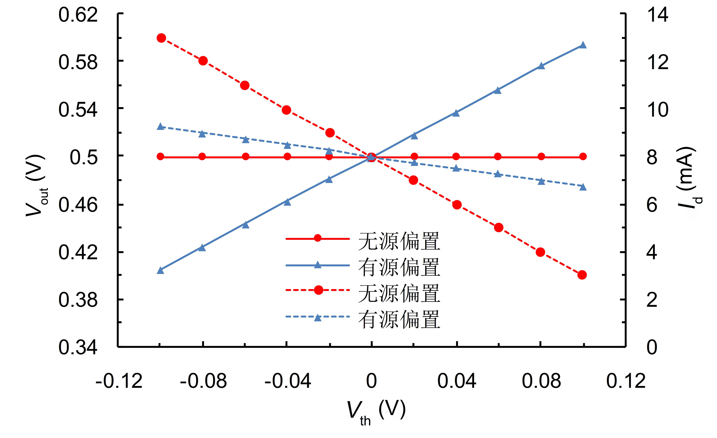 | 图4 Vout及Id随Vth变化的仿真结果 |