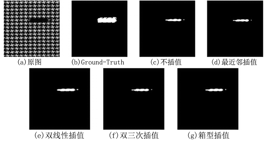 | 图7 不同插值方法对星形粗条纹类型瑕疵图检测结果 |