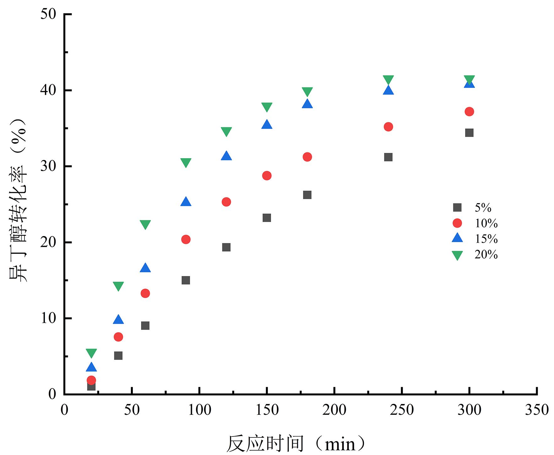 | Fig.3 Influence of catalyst loading on conversion rate of isobutanol |
