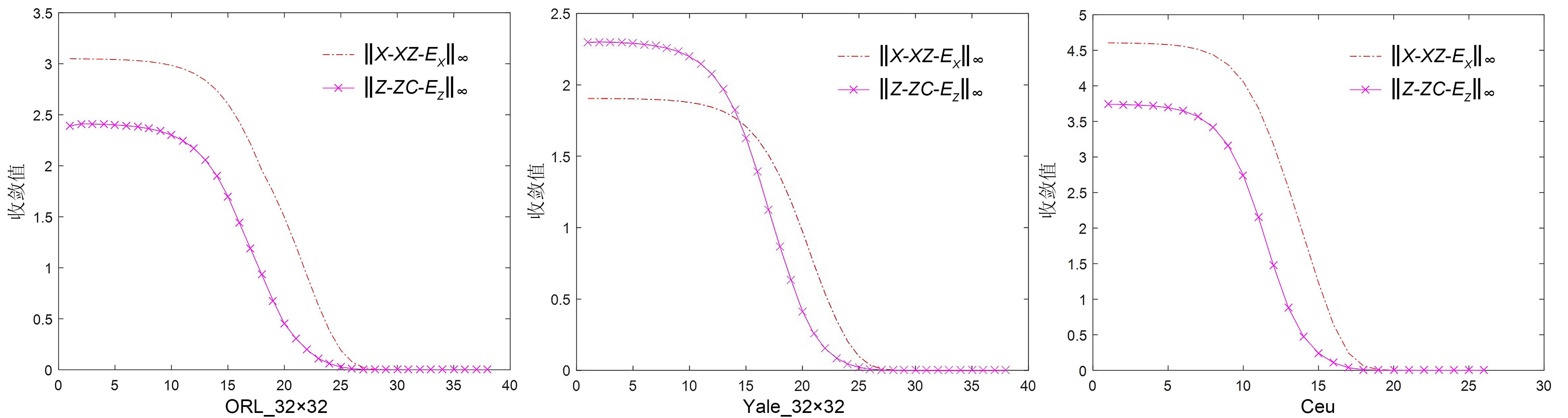 Convergence curves of DSLSR on ORL,Yale and Ceu datasets