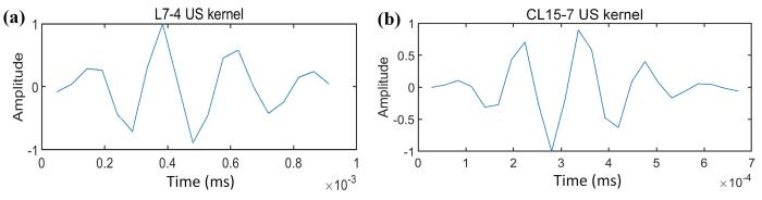 Normalized deconvolution kernel in ultrasonic experiments:(a) L7⁃4 probe,(b) CL15⁃7 probe