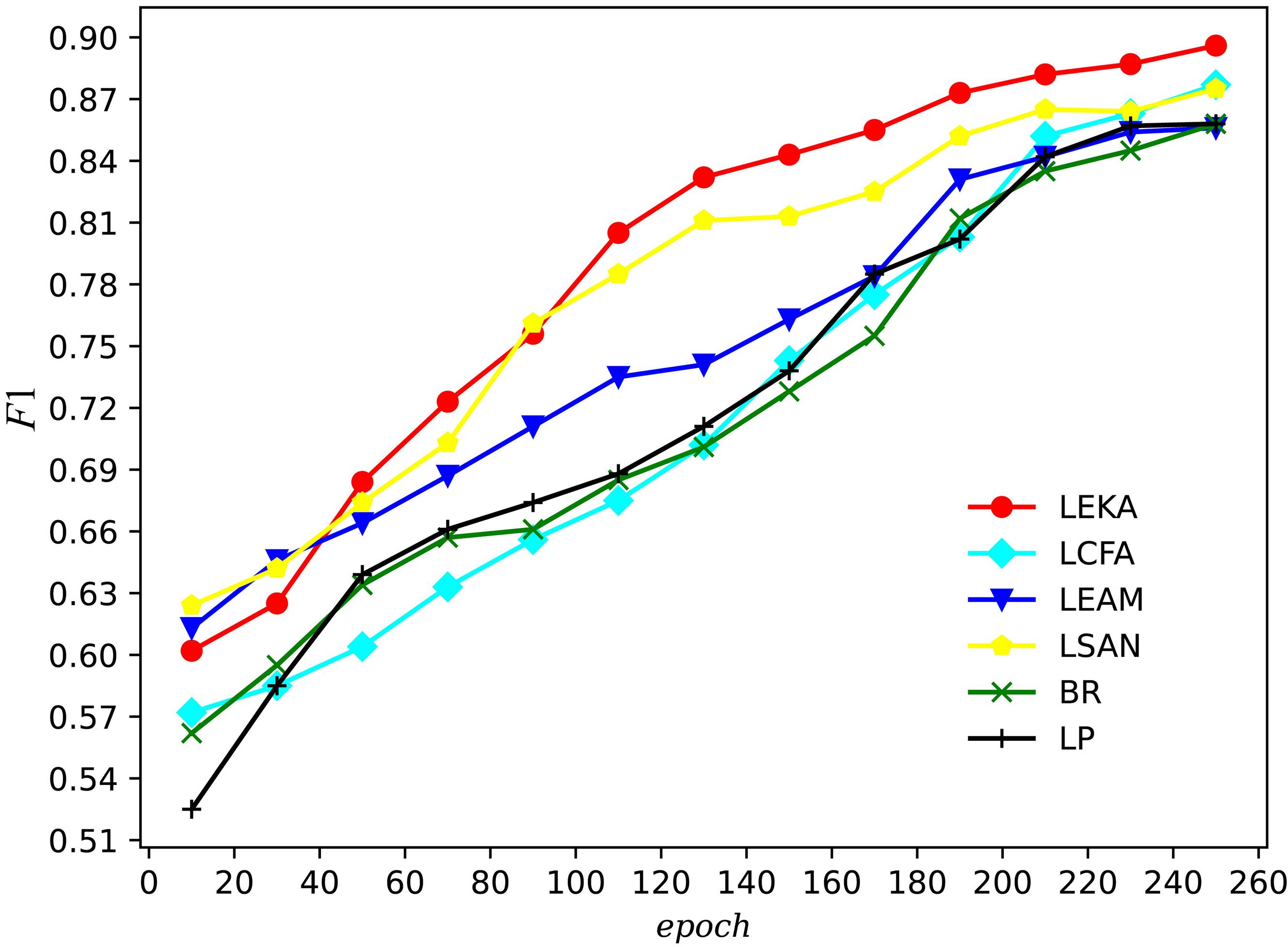 | Fig.5 Experimental process of ou LEKA and other models on RCV1?V2 dataset |