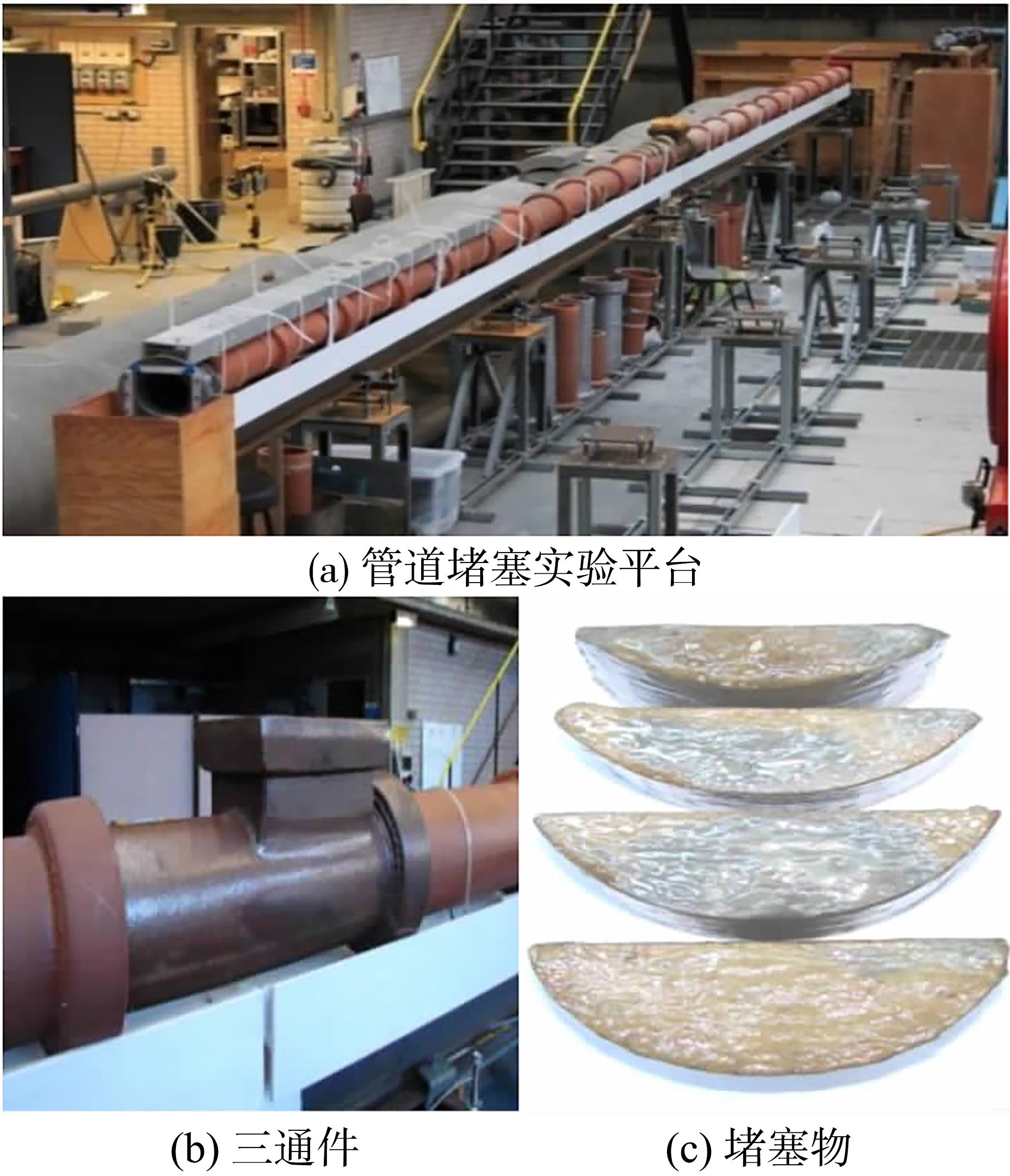 | 图3 实验平台、三通件和堵塞实物图 |