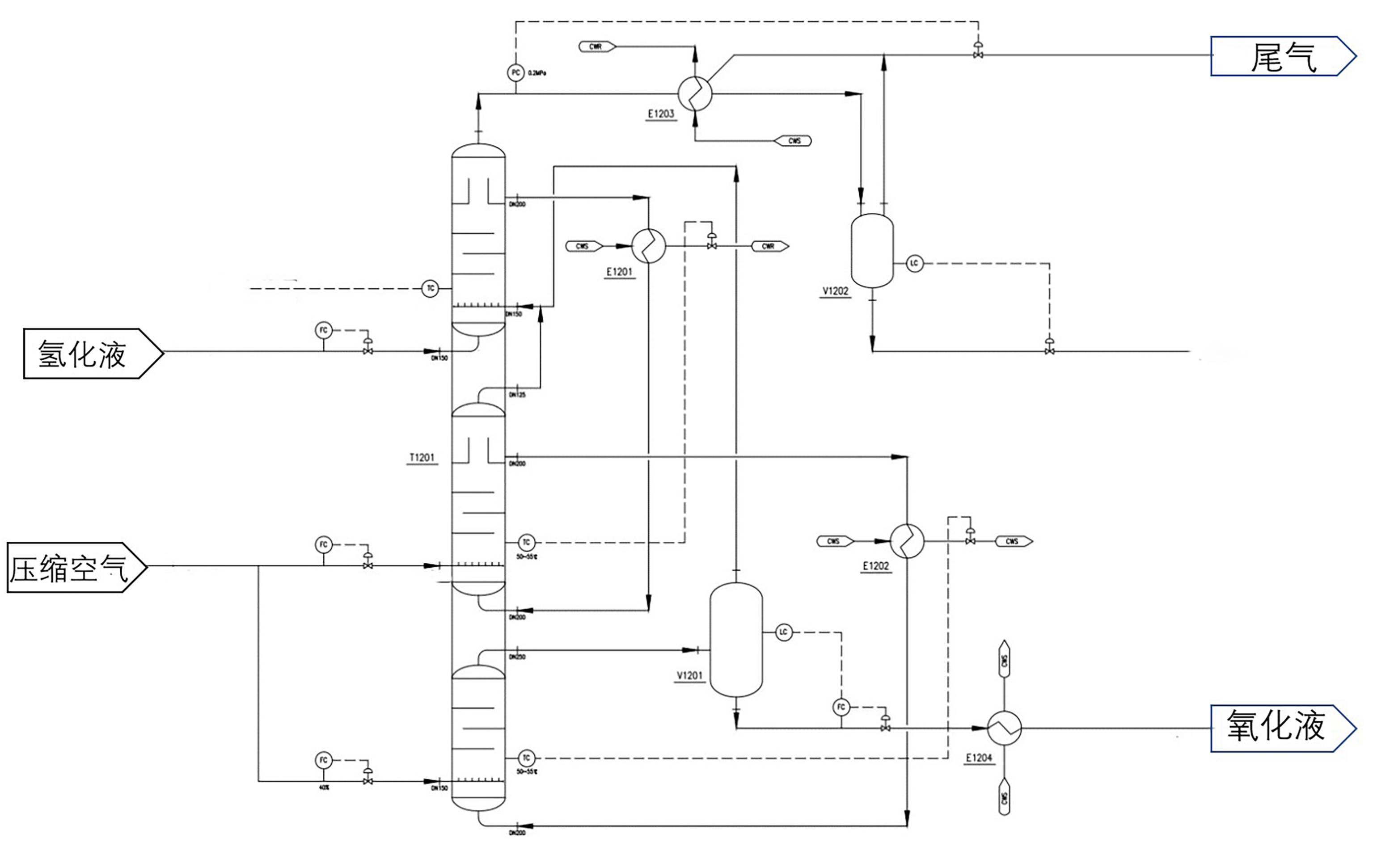 | 图1 典型的三段串联氧化反应工艺流程图 |