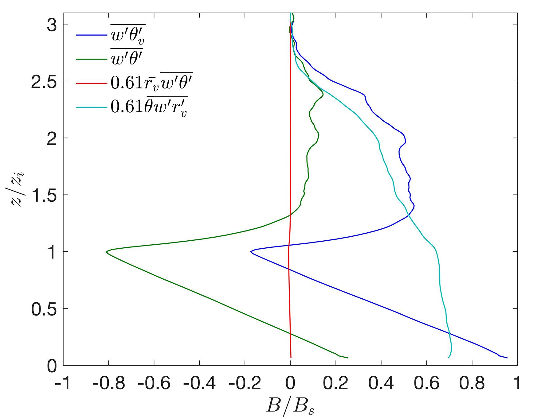 | Fig.2 Vertical profiles of the vertical buoyancy flux and its constituents in a typical shallow cumulus?topped boundary layer (Data is obtained from large?eddy simulation of the Barbados Oceanographic and Meteorological Experiment (BOMEX)[ |