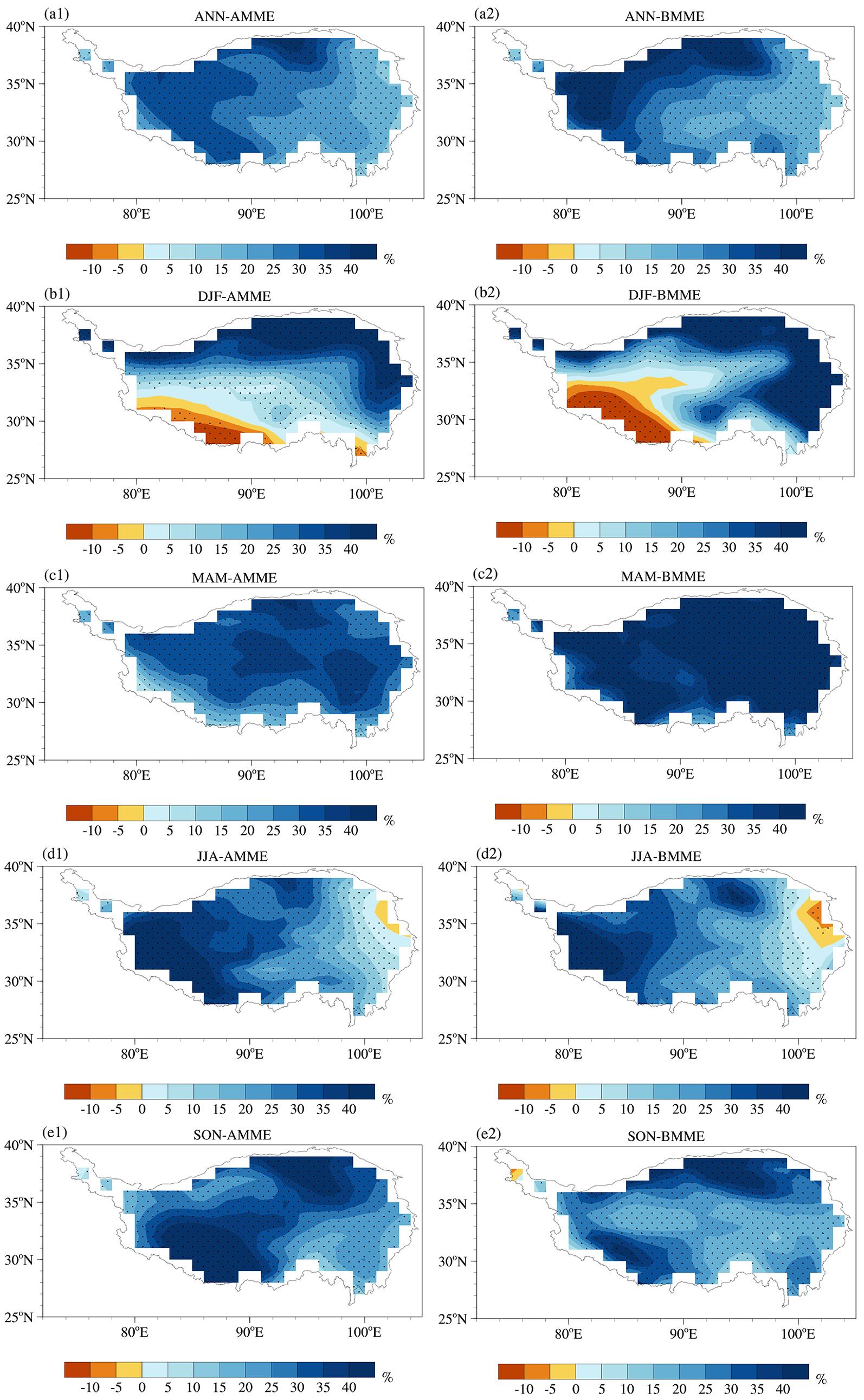 | Fig.7 Projected percentage changes for annual (a) and seasonal (b~e) precipitation under SSP5?8.5 over the period 2081-2100 relative to 1995-2014 |